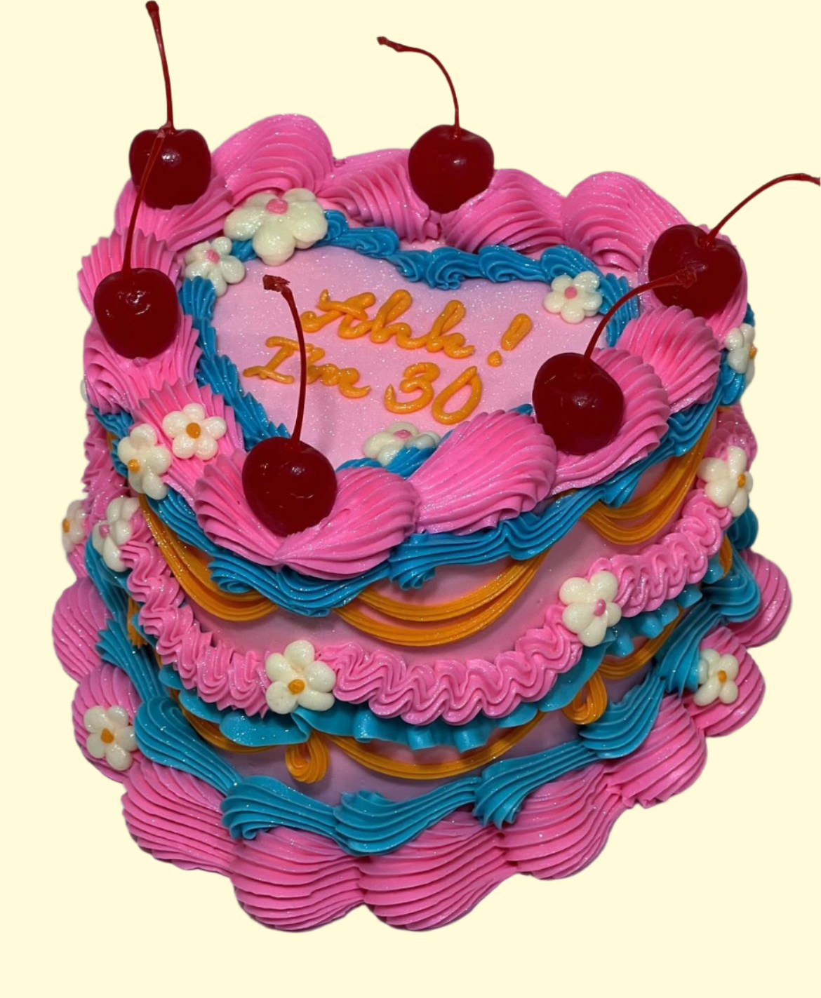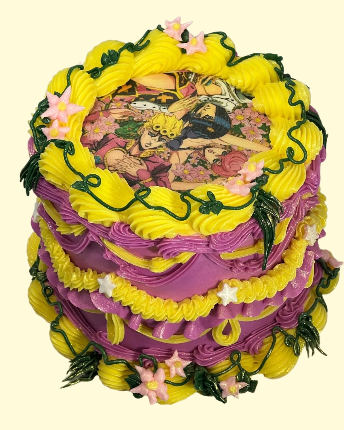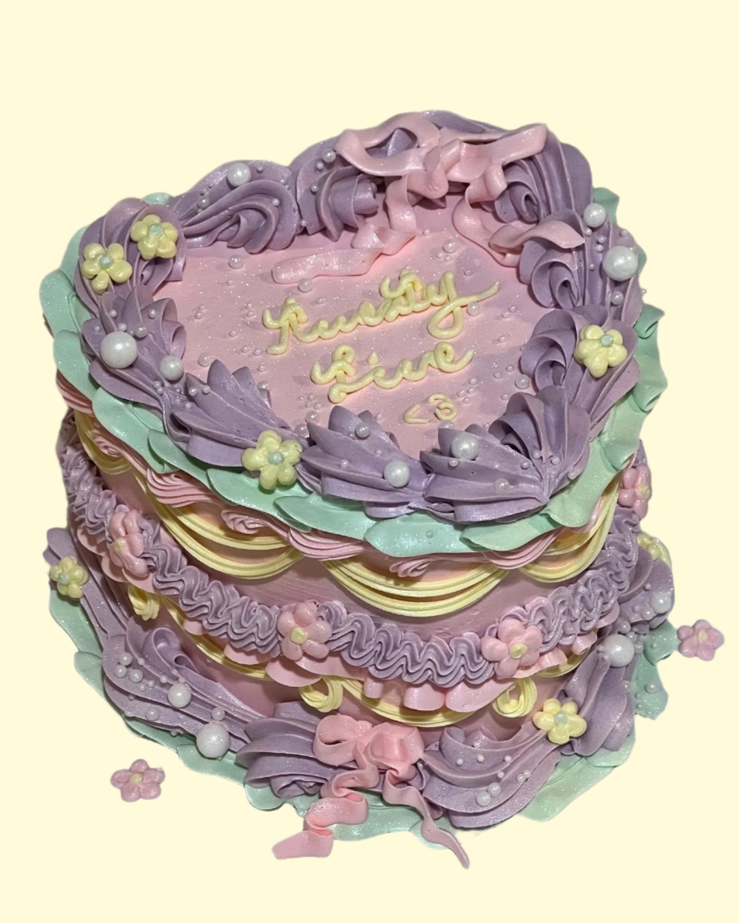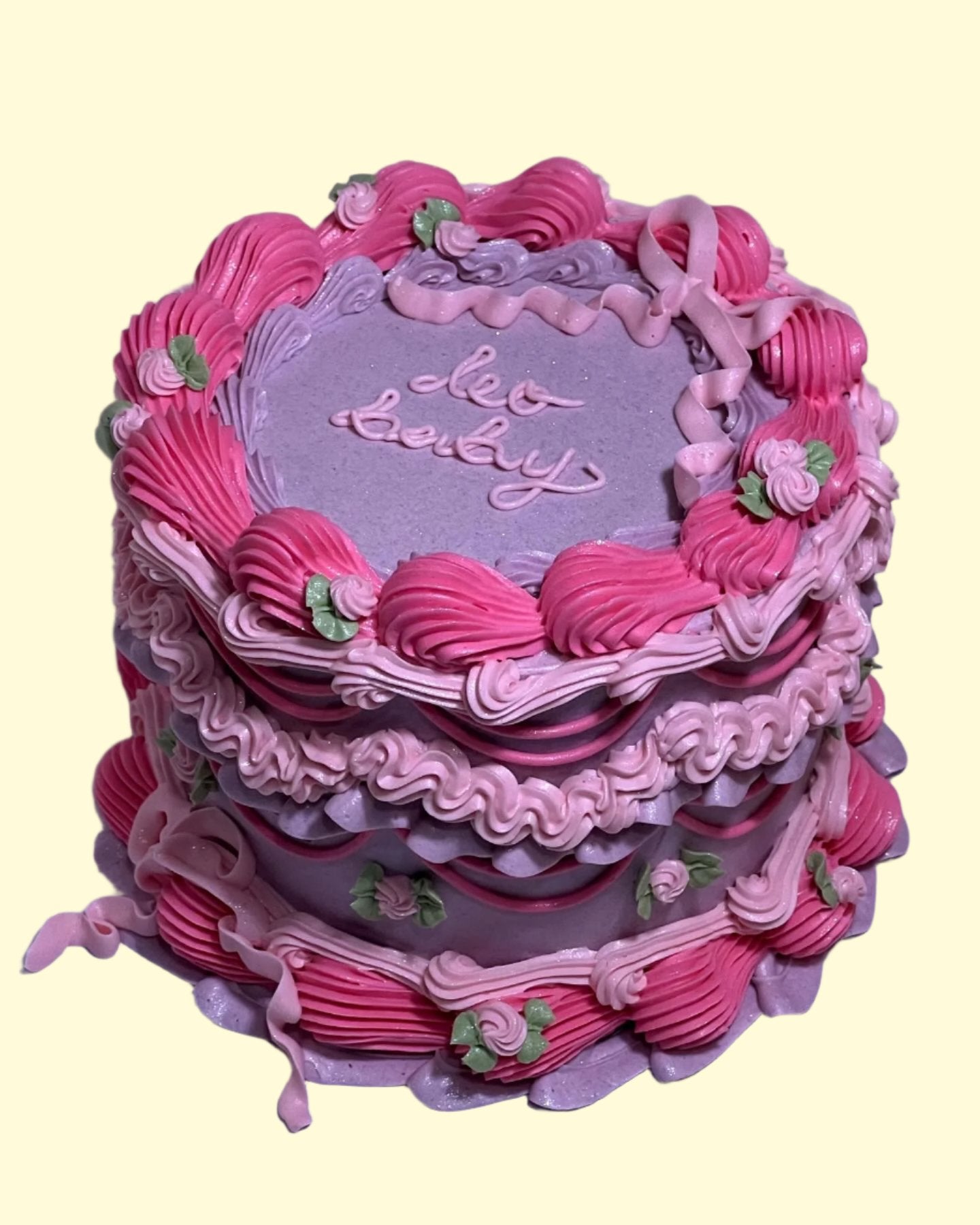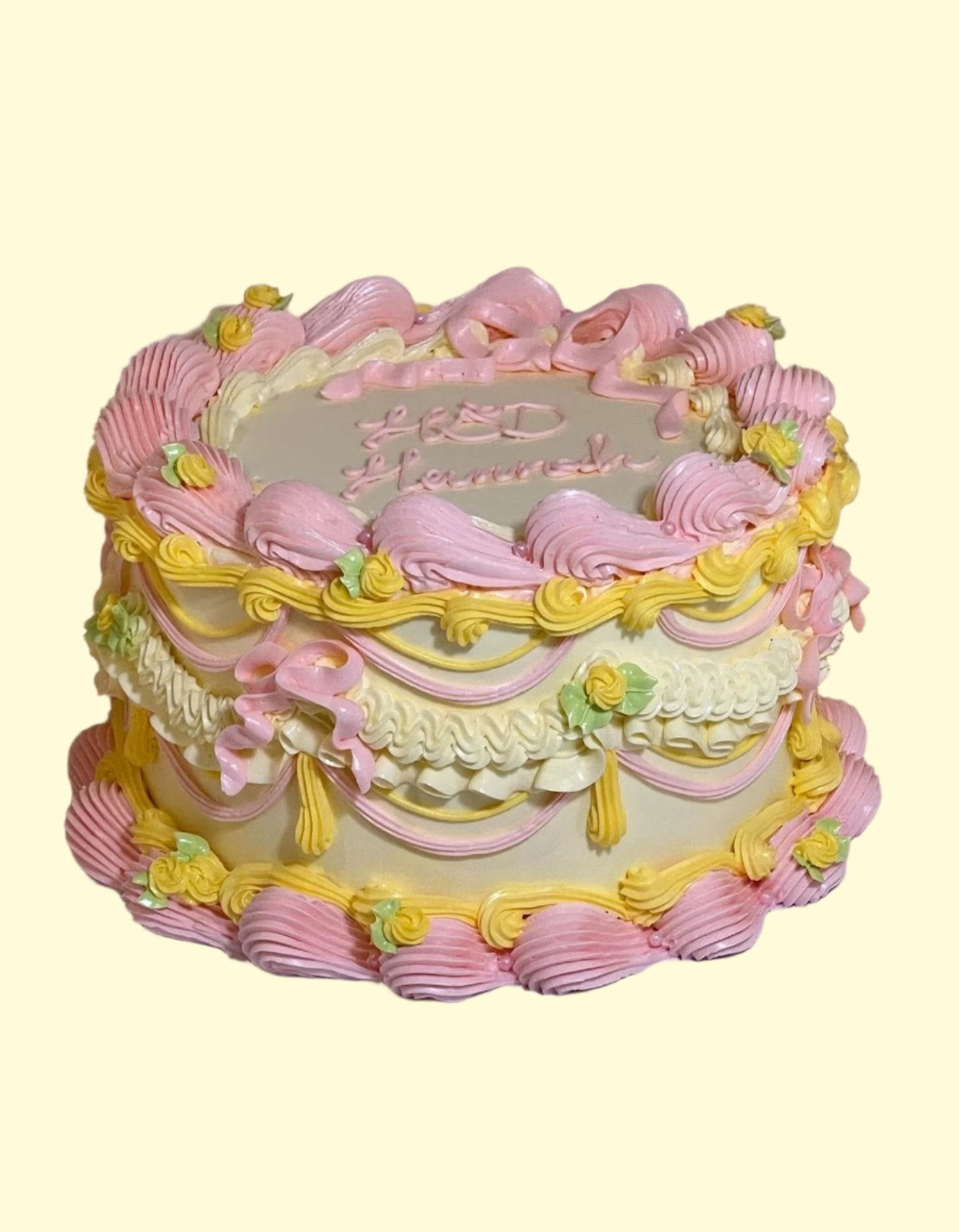 These are absolutely over the top cakes. They are highly decorated with extra borders and piped motifs. Customize with your favorite colors and fun add-ons like bows and disco balls! Go into detail about your dream design in the notes section, or give me creative liberty!