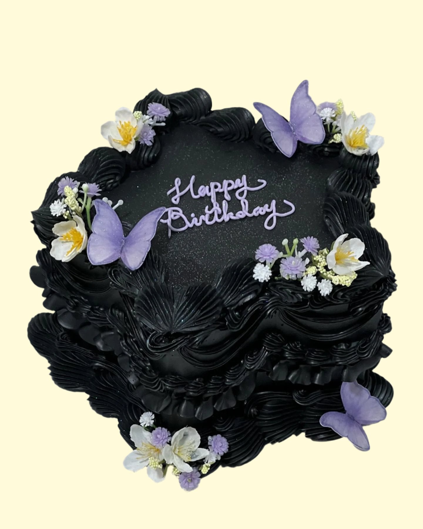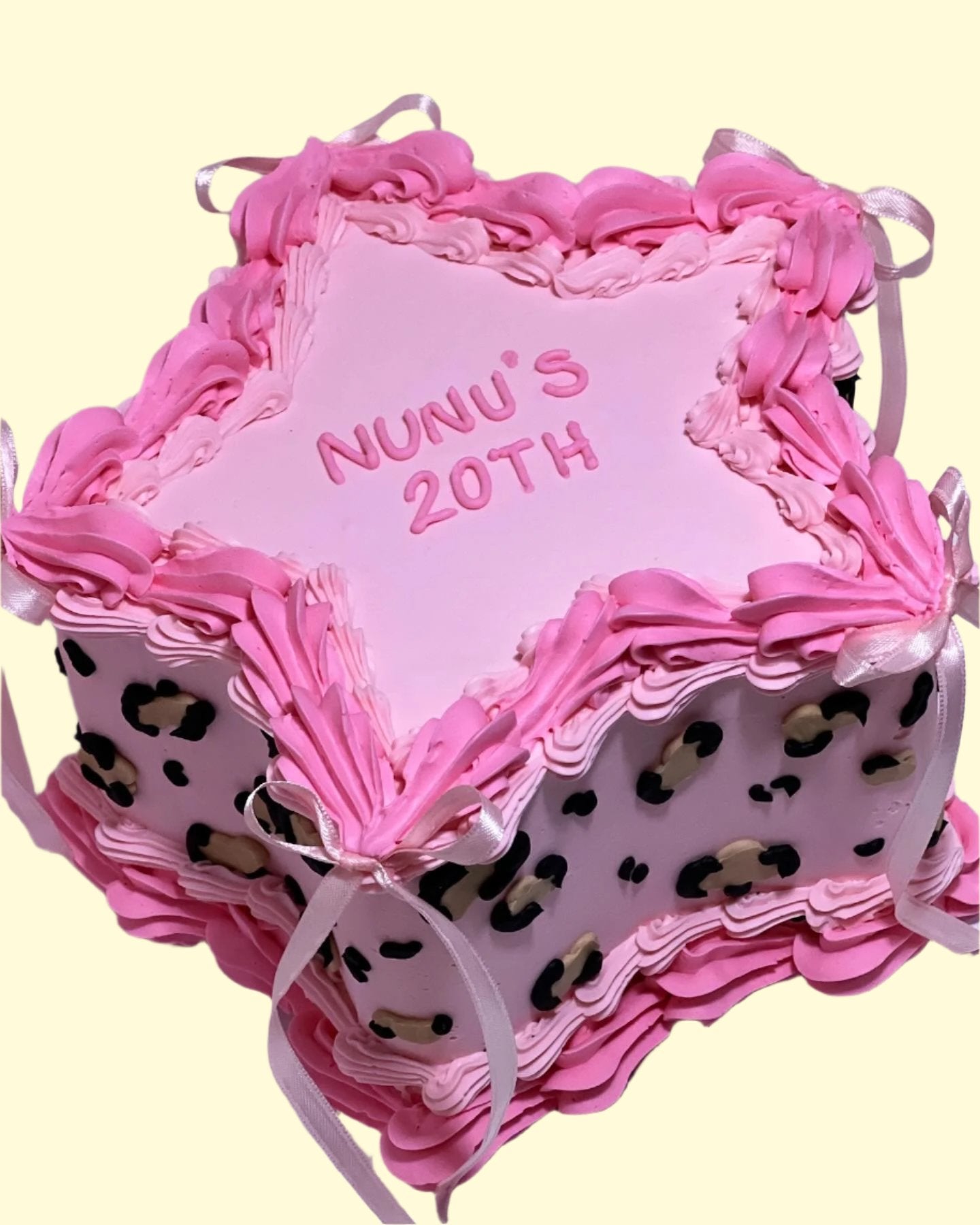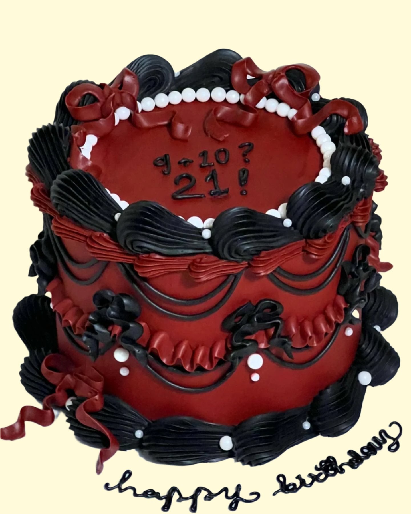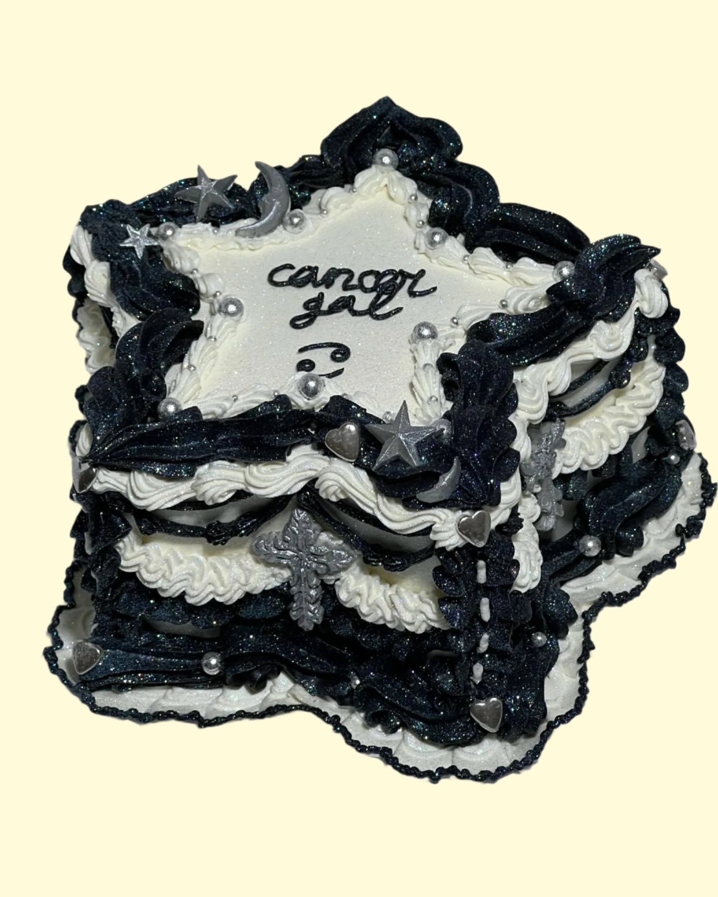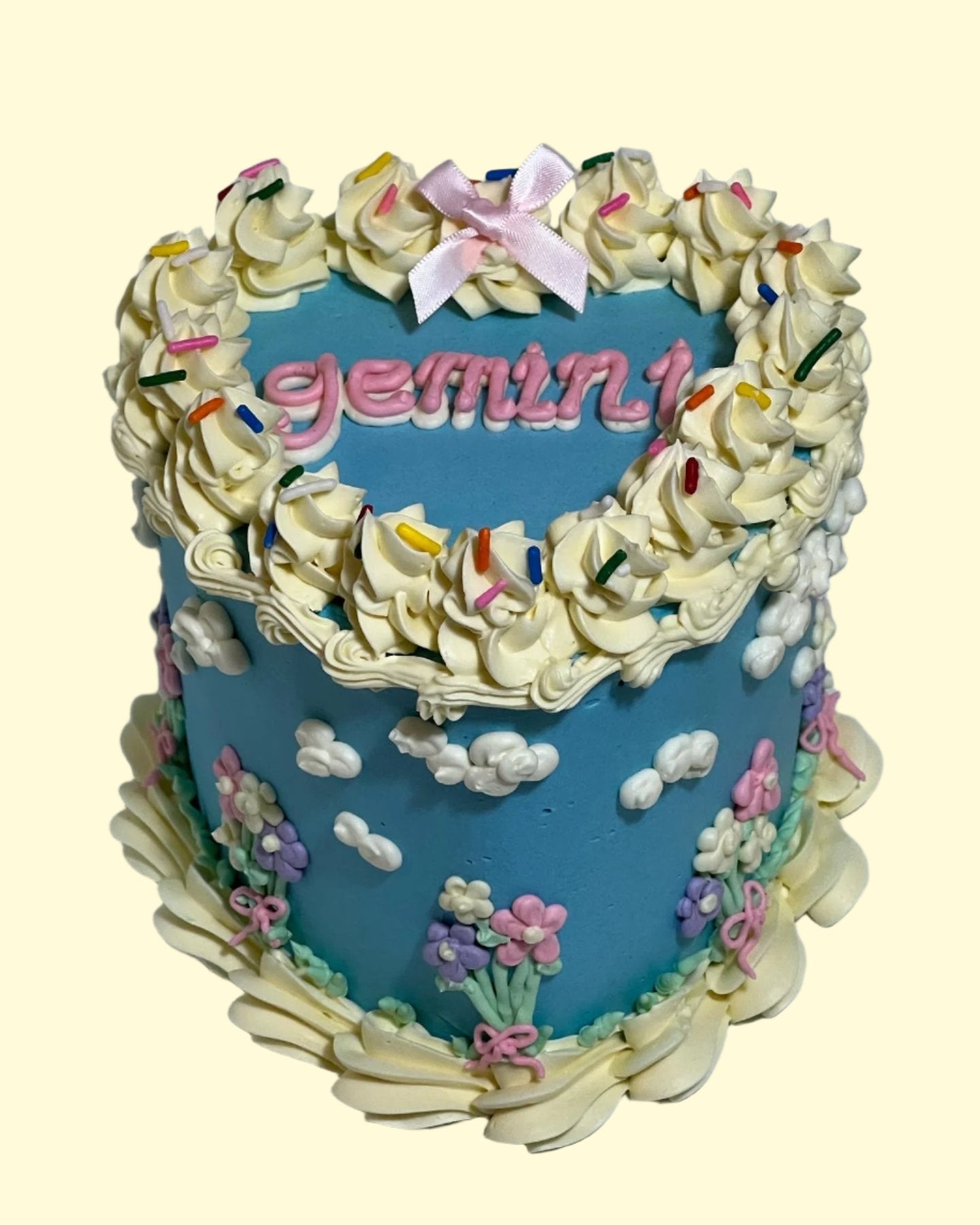 These are absolutely over the top cakes. They are highly decorated with extra borders and piped motifs. Customize with your favorite colors and fun add-ons like bows and disco balls! Go into detail about your dream design in the notes section, or give me creative liberty!